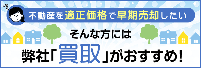とにかく早く売却したい!適正価格で買って欲しい! 早期売却や処分をご検討の方は、「買取」方式の不動産売却も。「買取」なら売主様のご負担が少なく、早期に現金化できます。